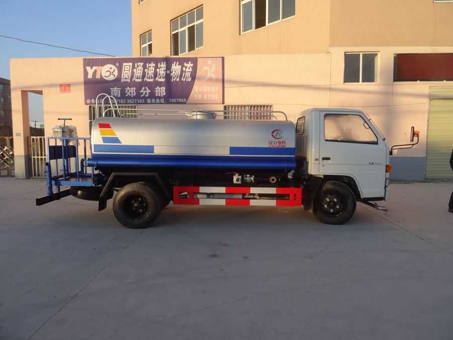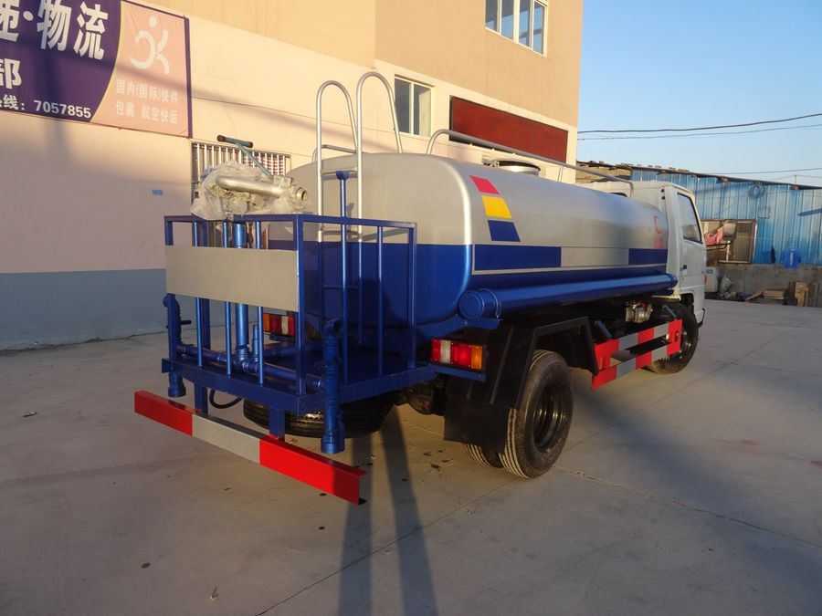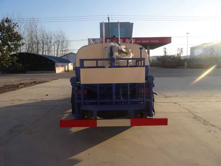 改裝配置:罐體采用4mm厚武鋼專用容積板制作,實際容積5立方,罐內(nèi)隔板具有防波作用,以減低汽車行駛時罐體液體的沖擊。泵 進泵出,消防栓接口,前沖、后灑、側(cè)噴、后工作平臺帶綠化水炮,垂直吸程≧7米,灑水寬度≧14-16米,射程≧20-25米,引水時 間<5min,流量90m3/h。自流閥、濾網(wǎng)、帶自吸自排功能。兩根等長輸水管,金屬漆,其余標配??杉友b藥盤、氣動控制閥、噴藥設(shè)備、非車帶泵動力等。