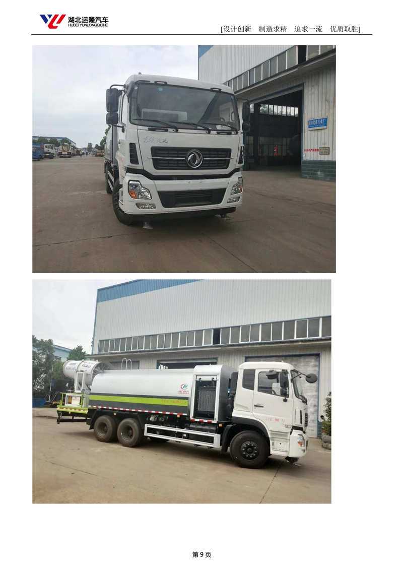 上裝配置:罐體容積為 15-18 立方多功能抑塵灑水車,選配風(fēng)送式霧炮機(jī)組射程50米、60米、80米、100米、120米,罐體鋼板為4mm碳鋼Q235材質(zhì),罐內(nèi)隔板具有防波作用,以減輕汽車行駛時(shí)罐體液體沖擊,罐體及整車外形尺寸按照公告。帶大功率專用灑水泵,泵可自吸自排,整車前沖、后灑、側(cè)噴、帶65消防接口,后平臺(tái)配CLW-50、CLW-60、CLW-80、CLW-100、CLW-120型風(fēng)送式霧炮機(jī)組;罐體前封頭配大功率柴油發(fā)電機(jī)組;遠(yuǎn)程遙控系統(tǒng)控制;霧炮機(jī)自動(dòng)旋轉(zhuǎn)角度0-360°。后平臺(tái)帶綠化灑水炮,灑水炮可全方位旋轉(zhuǎn),可連續(xù)調(diào)成直沖狀、大雨、小雨、毛毛雨;前封頭帶水位計(jì),后平臺(tái)主管路帶1寸澆花接口,后爬梯。帶兩根輸水管及陰陽(yáng)端。罐體顏色:銀/灰/綠,罐體兩側(cè)噴“多功能抑塵車”字樣,貼反光標(biāo)示。