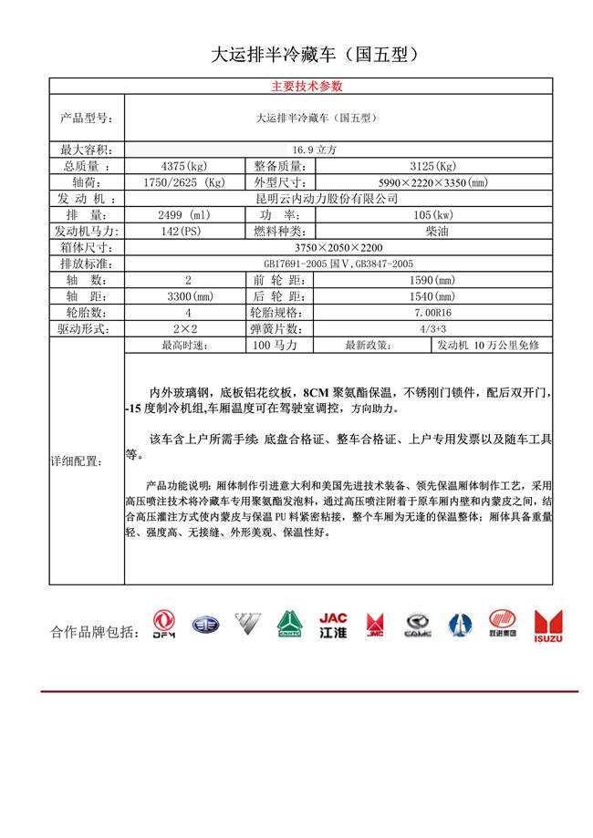大運(yùn)排半冷藏車(chē)(國(guó)五型)