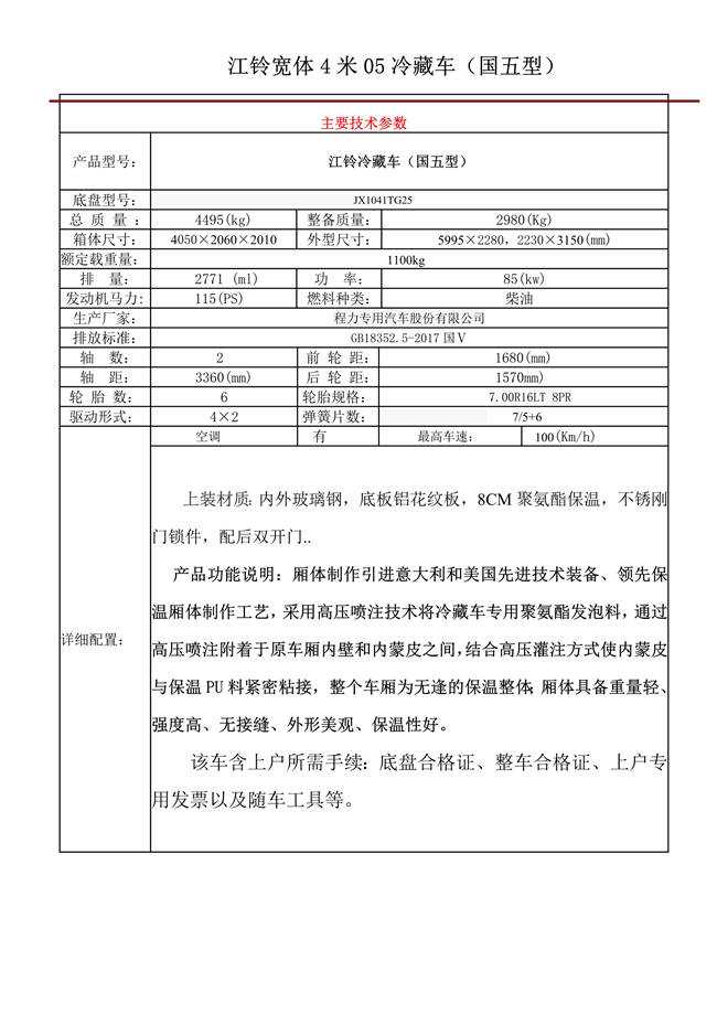 江鈴寬體4米05冷藏車