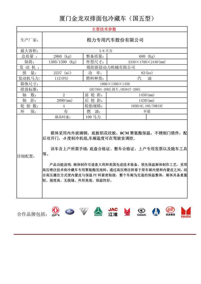 廈門(mén)金龍雙排面包冷藏車(chē)